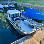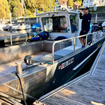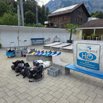 Einen Tauchausflug mit unserem Tauchboot, eine schnelle Aussenfüllanlage für Pressluft, Taucherspinds zur Aufbewahrung der Ausrüstung, einen Tauchshop sowie
